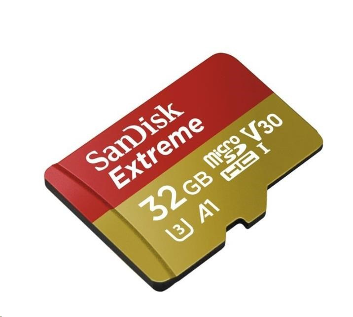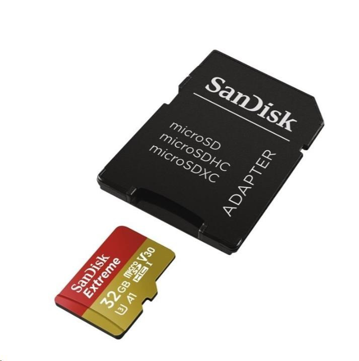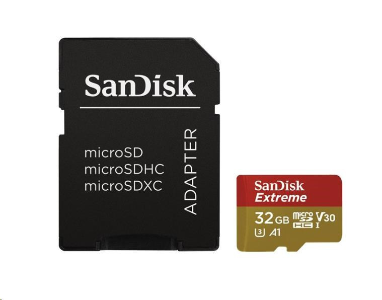 SanDisk MicroSDHC karta 32GB Extreme (100MB/s, Class 10, UHS-I U3 V30) + adaptér