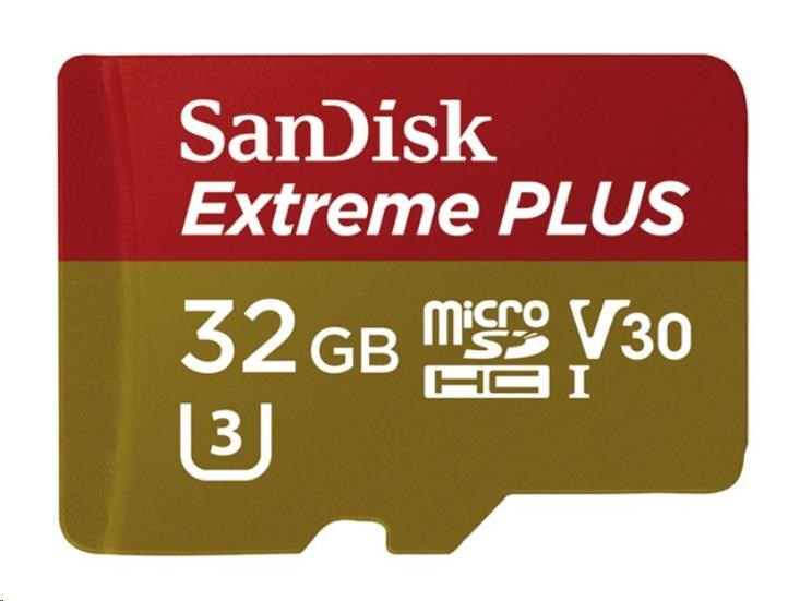SanDisk MicroSDHC karta 32GB Extreme PLUS (10MB/s, UHS-I V30, Rescue Pro Deluxe) + adaptér