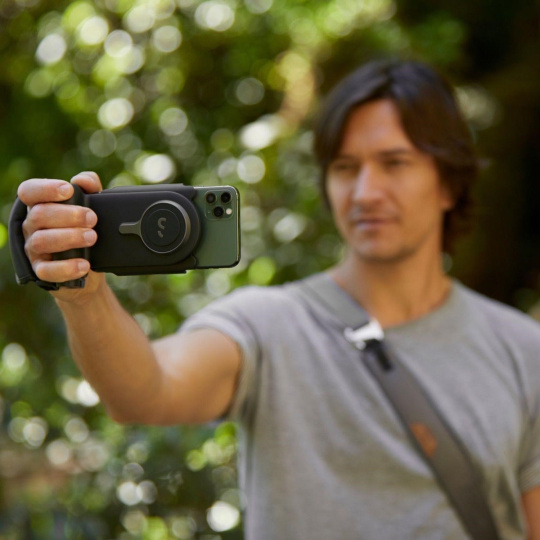 Stává se vám, že na konci dne plného pořizování videa a fotografií cítíte napětí v zápěstí? Jakkoliv je telefon praktickým pomocníkem, jeho tvar z ergonomického pohledu zkrátka není ideální. A to zejména v porovnání se zrcadlovkou. Právě tento problém překonává sada ProGrip od ShiftCam - sada, díky které získáte mnohem pohodlnější i bezpečnější úchop vašeho smartphonu. Precizní tvarování i výběr materiálů je dotažen do nejmenších detailů. Nechybí tak opěrka pro palec a ergonomické zaoblení, aby byl tlak vyvíjený vaší dlaní rovnoměrně rozložen. Odolná povrchová úprava rukojeti zabraňuje jejímu ulepení a opotřebení v průběhu času. Vysoce kvalitní gumový potah je protiskluzový, odolný proti potu a zároveň měkký na dotek.Pohotovostní bezdrátová powerbanka i stojánek v jednom