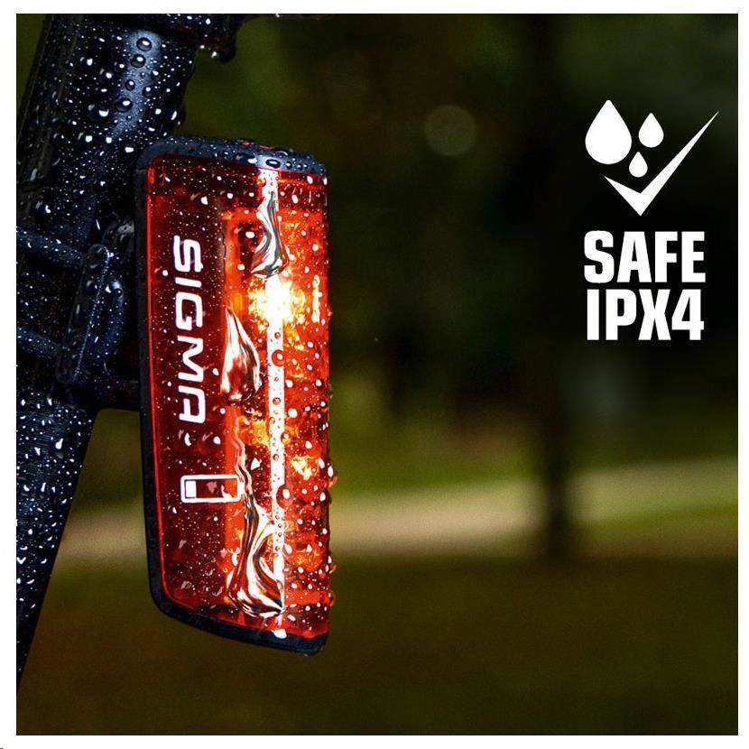 Integrovaný snímač zrychlení umožňuje třem jasným LED diodám signalizovat brzdění ostatním na silnici. Brzdové zadní světlo tak zvyšuje bezpečnost pro všechny účastníky silničního provozu. Světlo je možno používat i během dne bez trvalého svícení. Je to praktická vlastnost, zejména při jízdě ve skupině.