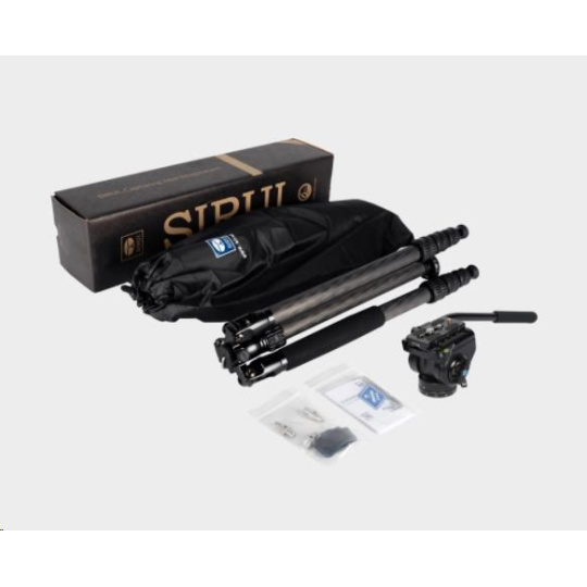 Profesionální stativ Sirui Traveler VC s video hlavou VA-5 určený pro kameramany a malé lehké pozorovací dalekohledy. Stativ je vyroben z uhlíkových vláken.
