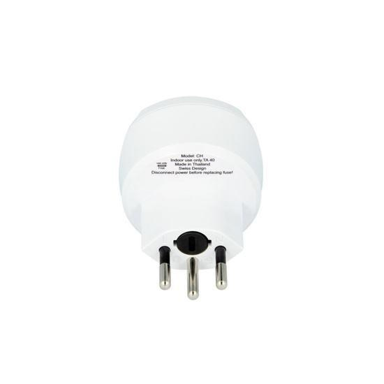 Cestovní adaptér s uzemněním, max. 10A, pro obyvatele Evropy navštěvující Švýcarsko, Schuko uzemnění zásuvky - funkční pro univerzální vidlice, lze použít i spotřebiče s 2-kolíkovou šňůrou, nová bezpečnější konstrukce.... více