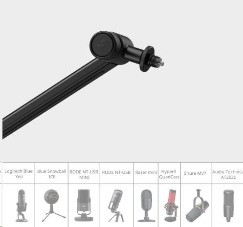 Na rozdíl od běžných mikrofonních ramen je tento stolní držák vybaven třemi hydraulickými tlumicími klouby, které umožňují nastavení více úhlů.