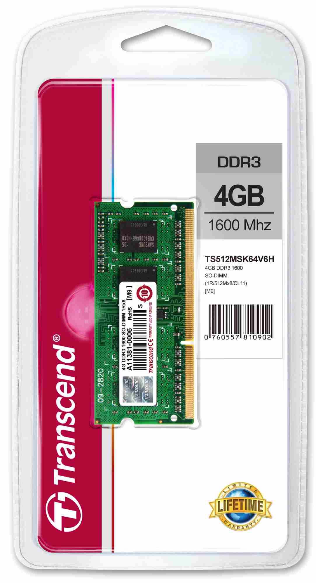 TRANSCEND SODIMM DDR3 4GB 1600MHz 1Rx8 CL11