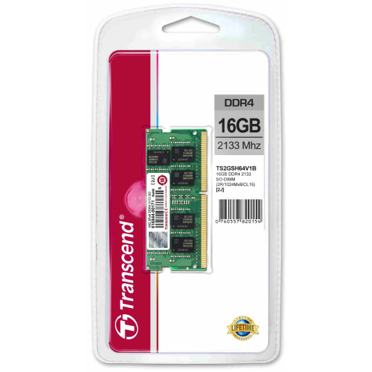 TRANSCEND SODIMM DDR4 16GB 2133MHz 2Rx8 CL15 Retail