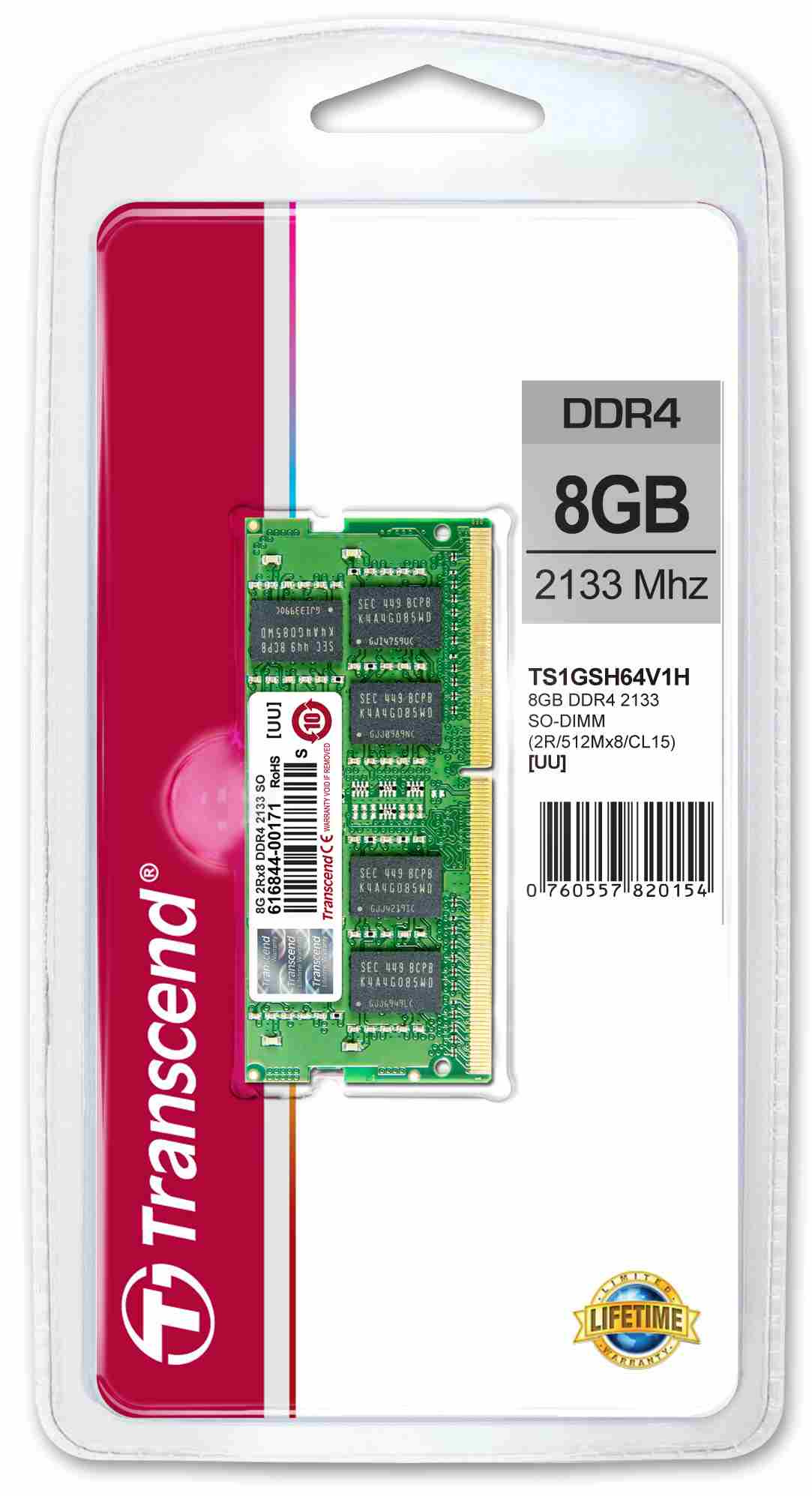 TRANSCEND SODIMM DDR4 8GB 2133MHz 2Rx8 CL15 Retail