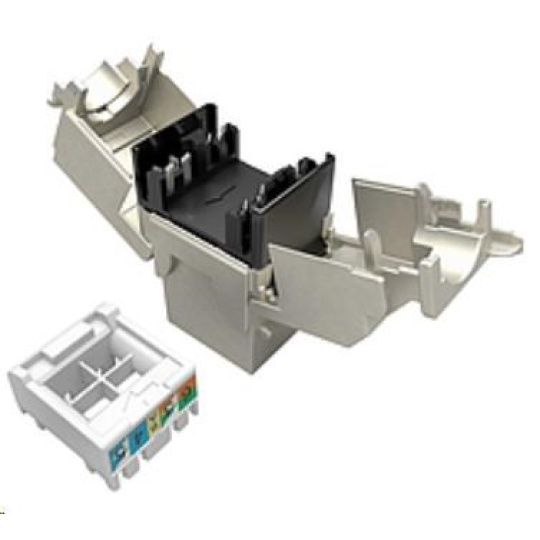 Balení 24 ks, samořezný stíněný keystone CAT6A s Connecting Hardware a 4PPoE certifikací.
