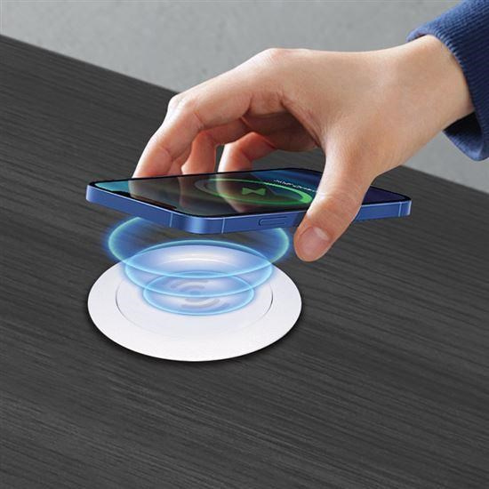 Vestavná bezdrátová nabíjecí podložka, Wireless Qi 15W, AC/DC adaptér DC 12.0V / 2.0A, 24W, přívodní kabel 1.5m, průměr otvoru v desce stolu: 60mm, nabíjecí výkony 15W – 10W – 7.5W – 5W, barva vrchního krytu: bílá.... více