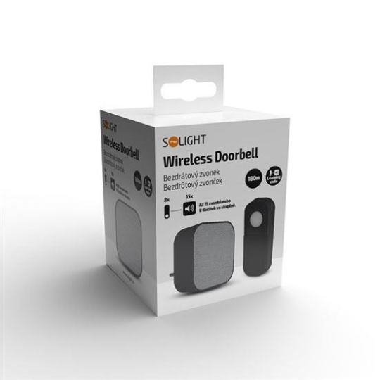Solight bezdrátový zvonek, do zásuvky, 180m, černý, learning code