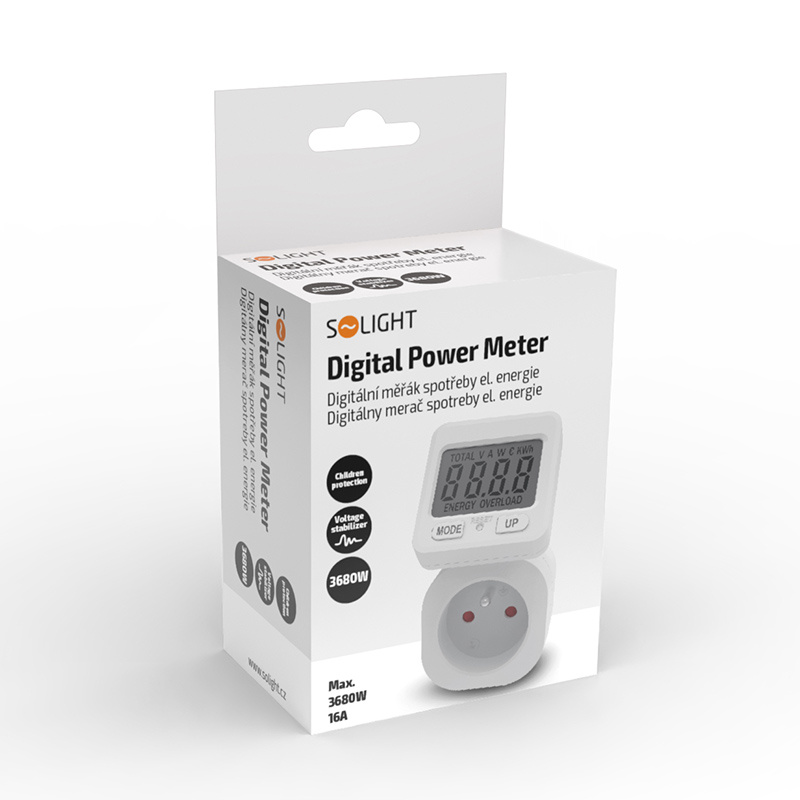 Potřebujete znát přesnou spotřebu elektrické energie vašeho zařízení? V tom případě pro vás máme tento praktický měřič spotřeby Solight DT26. Stačí ho zapojit do zásuvky a přímo do měřiče připojit vybrané zařízení. Tento šikovný pomocník dokáže přesně měřit napětí a okamžitý odebíraný výkon. Vše je zobrazeno na přehledném 2" displeji a jednoduché ovládání je realizováno pomocí tlačítek. Velikou výhodou je možnost nastavení ceny za energii, čímž dosáhnete přesného výpočtu celkové ceny za energii daného spotřebiče.