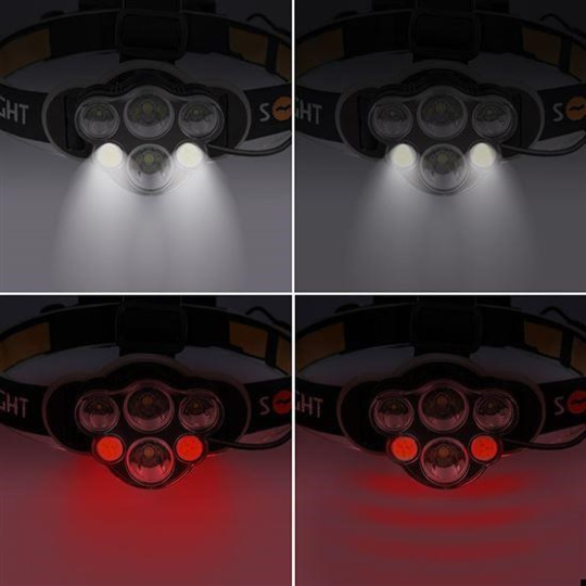 nabíjecí LED čelová svítilna s bílým a červeným světlem svítivost: max. 550lm 8 režimů svícení: 4x základní režimy + 4x přídavné režimy* 6x přední LED dioda 1x zadní LED dioda se samostatným vypínačem outdoorové užití (stupeň krytí IP44) výdrž baterií min/max: 4hod./16hod. doba nabíjení: 9hod. napájení: 2x baterie 18650 3.7V 2200mAh Li-on nabíjení: micro USB barva: černá * pro aktivaci přídavných režimů svícení dlouze přidržte tlačítko.