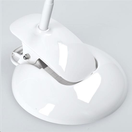 stolní lampička s LED světelným zdrojem lampička obsahuje připínací klip i podstavec pro umístění na stole tři vyměnitelné barevné kryty součástí: bílá, černá, zelená stmívatelná ve třech stupních jasu spínání a změna jasu dotykem prstu lampičku lze ohýbat a natáčet dle potřeby příkon: max. 5W světelný tok: max. 300lm teplota světla (chromatičnosti): 4000K (neutrální bílá) barva: bílá základna, měnitelné barevné kryty napájení: výstup AC 100-240V výstup DC 5V 1A rozměry: cca 380 x 280mm délka napájecího kabelu: 140cm energetická třída: A+ LED zdroj nelze měnit materiál: ABS.