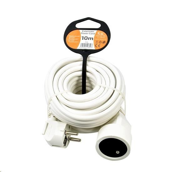 Kompaktní bílý prodlužovací kabel s délkou 10 metrů a jednou zásuvkou je ideální pro jednoduché prodloužení elektrické energie v domácnosti, kanceláři nebo dílně. Vhodný pro připojení samostatného zařízení mimo dosah pevné zásuvky.