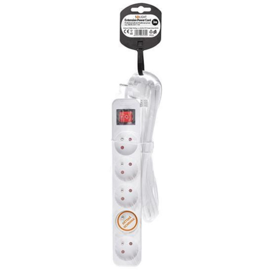 Praktický bílý prodlužovací kabel s délkou 3 metry a pěti zásuvkami umožní přivést elektrickou energii tam, kde není k dispozici pevná zásuvka. Podsvětlený vypínač umožňuje pohodlné ovládání všech připojených zařízení. Ideální pro domácí i kancelářské využití.