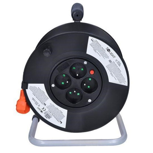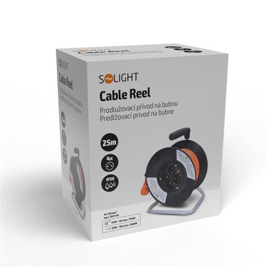 Solight prodlužovací přívod na bubnu, 4 zásuvky, 25m, oranžový kabel, 3x 1,5mm2