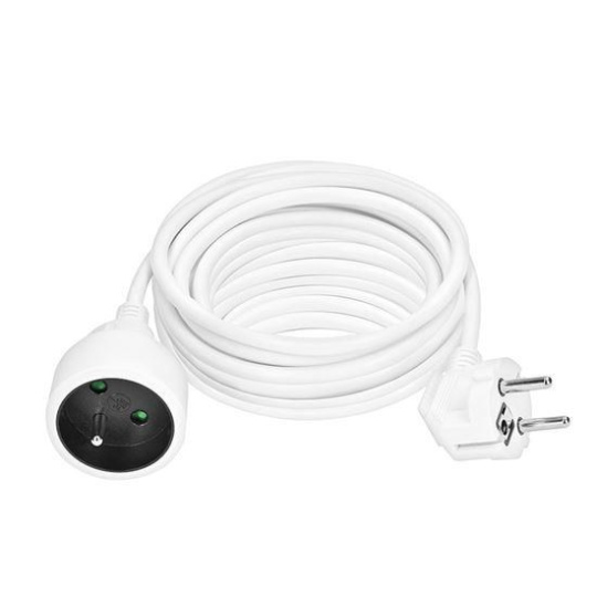 Kompaktní bílý prodlužovací kabel s délkou 10 metrů a jednou zásuvkou je ideální pro jednoduché prodloužení elektrické energie v domácnosti, kanceláři nebo dílně. Vhodný pro připojení samostatného zařízení mimo dosah pevné zásuvky.