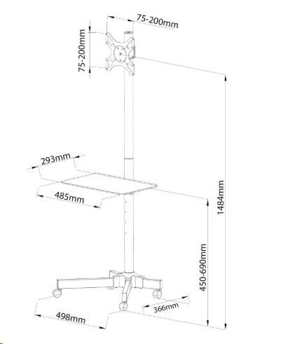 Stojan ErgoSolid Falco 40 Výškově nastavitelný, sklopný, na Tv 30-65", polička, pojezd s aretací, nosnost 60kg Výborný, cenově dostupný stojan pro zavěšení televizorů s úhlopříčkou 30" až 65"- Stojan je výškově nastavitelný v rozmezí 100cm až 148cm, sklopný +/- 15° a v balení naleznete i poličku na příslušenství o rozměrech 485mm x 293mm a nosností 4kg. Kabeláž je možné vést skrytě tělem stojanu. Stabilní podstava o rozměreh 837mm x 634mm je osazena pojezdovými kolečky s aretací. Stojan je vhodný díky pěknému designu, spolehlivosti a nízké ceně do obchodů, showroomů, prodejen, hotelů, na veletrhy, konference, ale i do domácností. Stojan ErgoSolid Falco 40 Ergosoild Falco 40: stojan na Tv 30-65 palců, nosnost 60kg, polička, nastavení výšky, vedení kabeláže, pojezd s aretací Technické údaje: nosnost 60kg podpora VESA standardů 100x100 až 600x400 možnost zavěšení Tv s úhlopříčkou 30" až 65" výškové nastavení Tv v rozmezí 100cm až 148cm možnost náklonu +/- 15° polička na příslušenství, rozměry 485mm x 293mm. nosnost 4kg systém pro skryté vedení kabeláže tělem stojanu stabilní podstava s rozměry 837mm x 634mm pojezdová kolečka s aretací materiál ocel výborná kvalita a pěkný design barevné provedení černé záruka 3 roky.
