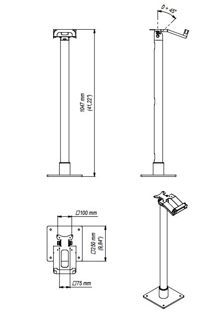 Stojan na monitory, Tv a dotykové displeje Edbak STD03 Podlahový stojan na monitory, Tv a dotykové displeje 15" až 43", výška 105cm, náklon obrazovky 0° až +45°, vedení kabeláže, nutné kotvení, VESA standardy 75x75 a 100x100, nosnost 10kg, záruka 10 let Profesionální podlahový stojan pro monitory nebo televizory s úhlopříčkou 15" až 43". Stojan má reprezentativní vzhled a je nejvyšší kvality, zpracování na nejvyšší úrovni. Nutné ukotvení do podlahy nebo podstavce. Stojan je vhodný jak na klasické, tak i dotykové obrazovky. Skryté vedení kabeláže tělem stojanu. Podporuje VESA standard 75x75 a 100x100, je možné zakoupit rozšíření na 200x100 nebo 200x200. Nosnost 10kg. Záruka 10 let. Podlahový stojan na monitor Tv nebo dotykový displej Edbak STD03 Technické údaje: nosnost 10kg na monitory, televize a dotykové displeje 15" až 43" podporuje VESA standardy 75x75 a 100x100 náklon obrazovky až 0° až +45° výška 1050mm systém vedení kabeláže nutnost ukotvení podstavce nejvyšší kvalita, profesionální výrobek barevné provedení: chromová tyč + podstavec s držákem černý záruka 10 let Naklápění monitoru displeje na stojanu Edbak STD03 Stojan na monitory a Tv Edbak STD03 podporuje VESA standardy: VESA 75x75 VESA 100x100 Vhodné využití: prezentace školy úřady kanceláře vstupní haly informační centra laboratoře nemocnice nabídka sortimentu prostřednictvím dotykových obrazovek.