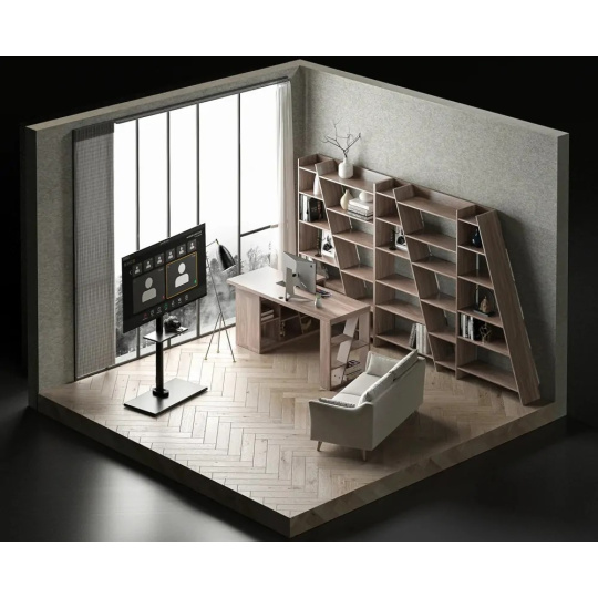 Podlahový stojan / stolek na TV i monitory 23" - 55", nastavení výšky 868 / 908 / 948 / 988 / 1028 / 1068mm, náklon +6° / -6°, podstava 700 x 350mm, polička 380 x 190mm s nastavitelnou výškou 220 - 770mm, instalační materiál, vedení kabeláže, VESA 100x100 až 400x400, nosnost 35kg