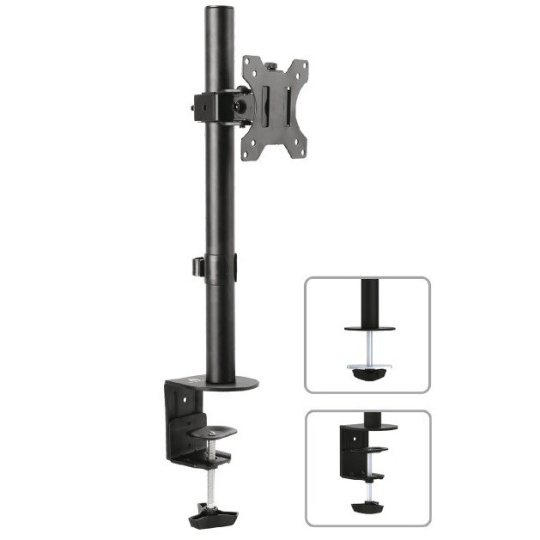 Stolní držák na monitor Tv Fiber Mounts M7C51 Kvalitní nastavitelný stolní držák na monitor nebo Tv 13-32", otočný +/- 90°, sklopný až +/- 45°, výškové nastavení od stolové desky, VESA standardy 75x75 a 100x100, nosnost 8kg, záruka 5 let Univerzální stolový držák pro uchycení monitoru nebo televize s úhlopříčkou 13-32". Držák podporuje VESA standardy 75x75 a 100x100, můžete zakoupit rozšíření na VESA 200x100 a 200x200. Spolehlivé a bezpečné upnutí na stolové desky, 2 typy stolních úchytů 10-88mm. Polohování obrazovky otáčením do stran až +/- 90°, náklonem až +/- 45° a výškovým nastavením od stolu max. 400mm. Velmi pevná a bezpečná konstrukce z oceli. Nosnost 8kg. Barevné provedení černé, záruka 5 let. Kvalitní monitorový a Tv držák na stůl do kanceláře, pracovny, učebny nebo domácnosti Fiber Mounts M7C51 Technické údaje: maximální zatížení 8kg podporuje VESA standardy 75x75 a 100x100 možnost rozšíření na VESA 200x100 nebo 200x200 doporučená úhlopříčka monitoru nebo televize 13 až 32" otáčení do stran +/- 90° náklon až +/- 45° celková výška 443mm výškové polohování obrazovky upnutí na vodorovnou plochu (stůl) o síle 10-88mm součástí balení 2 typy upnutí - na okraj nebo do prostoru bezpečné a spolehlivé uchycení obrazovky na stolovou desku úchytka na kabely materiál ocel barva černá záruka 5 let Stolní držák na monitor nebo televizi do kanceláře nebo domácnosti Fiber Mounts M7C51 Držák monitoru Fiber Mounts M7C51 podporuje VESA standardy: VESA 75x75 VESA 100x100 VESA 200x100 - za příplatek VESA 200x200 - za příplatek Na držák Fiber Mounts M7C51 je možné uchytit veškeré typy a značky monitorů nebo televizí, které podporují kterýkoliv z výše uvedených VESA standardů a jejichž hmotnost není vyšší jak 8kg..