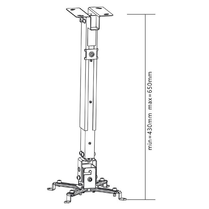 Stropní držák na projektory, univerzální, nastavení vzdálenosti od stropu 430-650mm, naklápění +/-15°, barva stříbrná, nosnost 20kg.... více