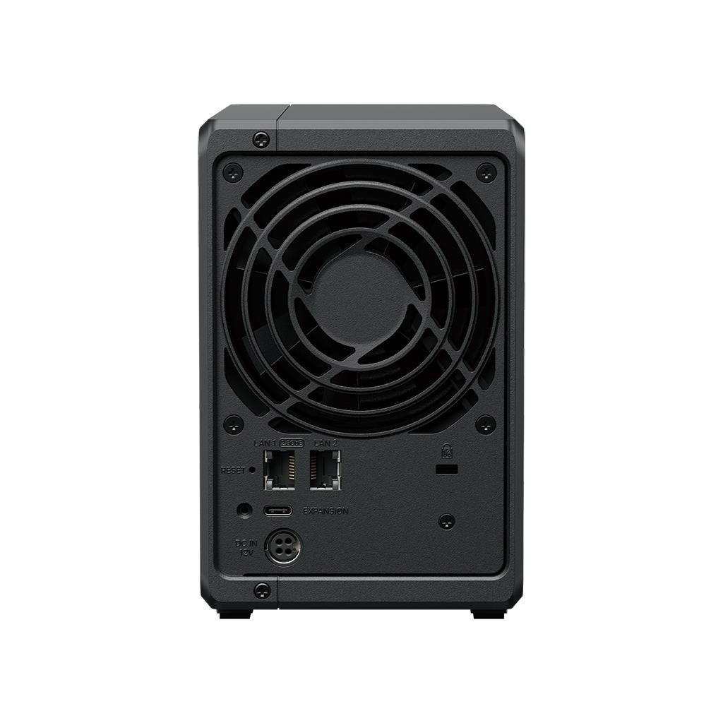 DS725+ nabízí vestavěné 2.5GbE připojení a podporuje jak SATA SSD, tak HDD v interních pozicích 2.5"/3.5", stejně jako M.2 NVMe disky přes M.2 sloty pro použití jako cache.