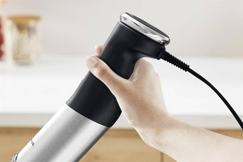 Zařízení je opatřeno měkkou ergonomickou rukojetí a odolným kovovým pláštěm s precizně navrženou ochranou proti rozstřiku. To vše usnadňuje a zpříjemňuje používání tyčového mixéru Tefal HB67G830 Quickchef+ 5v1 Black.