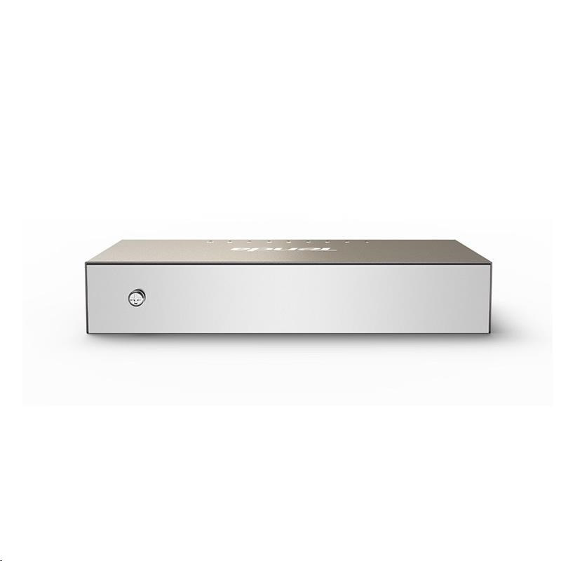 Switch je napájen externím zdrojem 9V DC, 600mA. Maximální spotřeba 5 Watt. Montáž na zeď, kovové provedení.