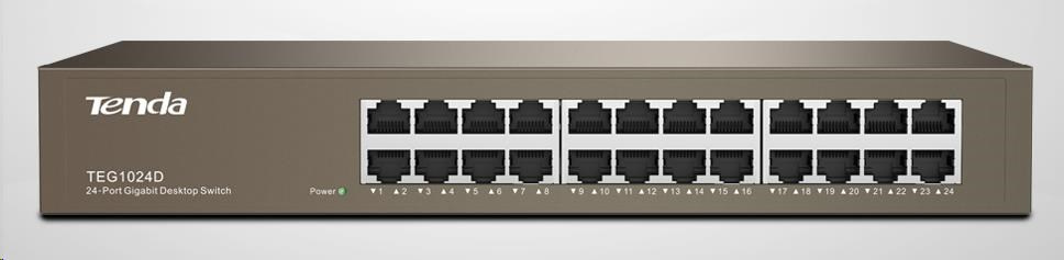 Tenda TEG1024D 24-port Gigabit Ethernet Switch, 10/100/1000 Mbps, fanless, rackmount