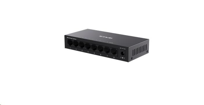 - 8 gigabitových portů: Umožňuje rychlý přenos dat s vysokou propustností.