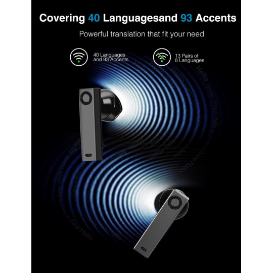 - 40 online jazyků a 93 dialektů - Podporuje simultánní překlad ve 40 jazycích s rozpoznáním 93 akcentů pro přirozenější komunikaci včetně slovenštiny a češtiny.