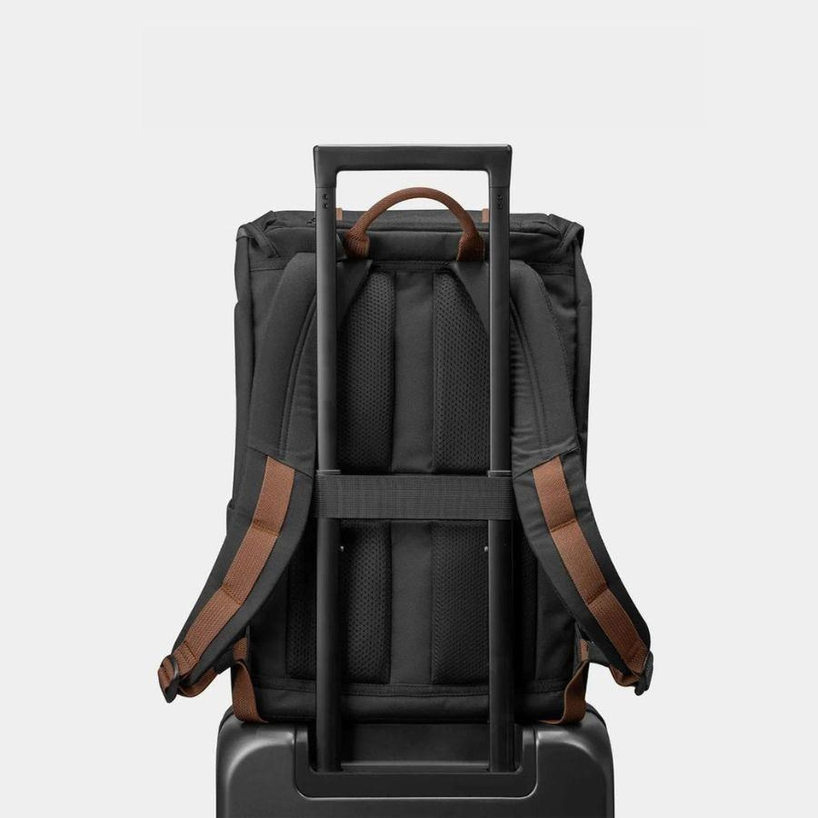 Vedle polstrovaného, prodyšného zádového panelu pro dlouhé nošení poskytují pohodlí také polstrované ramenní popruhy. Jejich délku snadno nastavíte pomocí přezek YKK. Bezchybně navržená konstrukce batohu, měkká výstelka částí, jež se bezprostředně dotýkají vašeho těla, a zajištěná cirkulace vzduchu přispívají k pocitu lehkosti i při nošení velkého nákladu. K vašemu komfortu napomáhají i další, do detailu dotažené maličkosti. Příkladem je popruh pro protažení rukojeti zavazadla umístěn na zadní straně batohu. Dále rukojeť na horní straně a madlo na vnitřní straně pod klopou, abyste mohli batoh kdykoli snadno přenést. Stahovací šňůrka pro uzavřený hlavní kapsy zaujme svým retro designem. Spolehnout se můžete na prémiové YKK zipy i voděodolnou svrchní tkaninu. Všechny tyto vysoce kvalitní komponenty perfektně vyvažují požadavky na odolnost a styl.Shrnutí vlastností