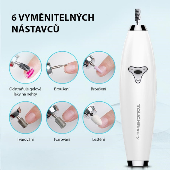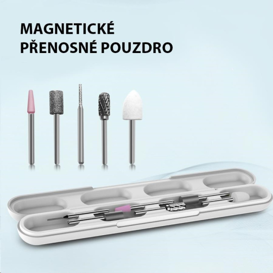 - Souprava se 6 nástavci - čistí, opravuje, tvaruje, ostří, brousí a leští nehty.