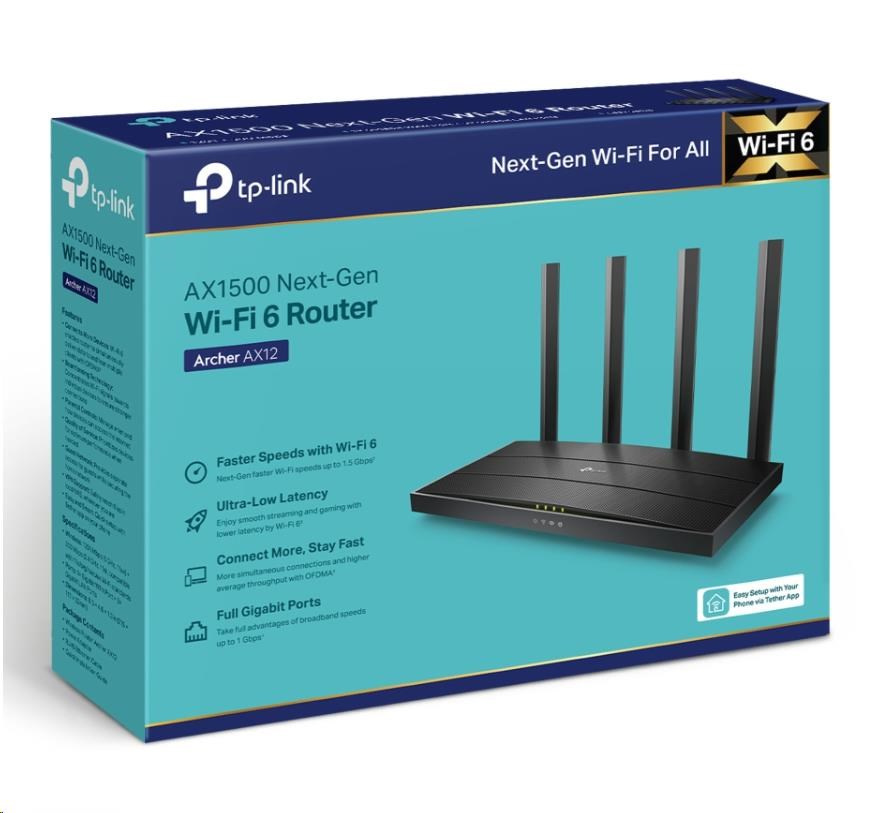 TP-Link Archer AX12 OneMesh/EasyMesh WiFi6 router (AX1500,2,4GHz/5GHz,3xGbELAN,1xGbEWAN)