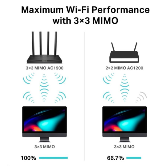 - 3×3 MIMO technologie – Přenos a příjem dat ve třech proudech pro bezproblémové spárování s vašimi 3 × 3 klienty.