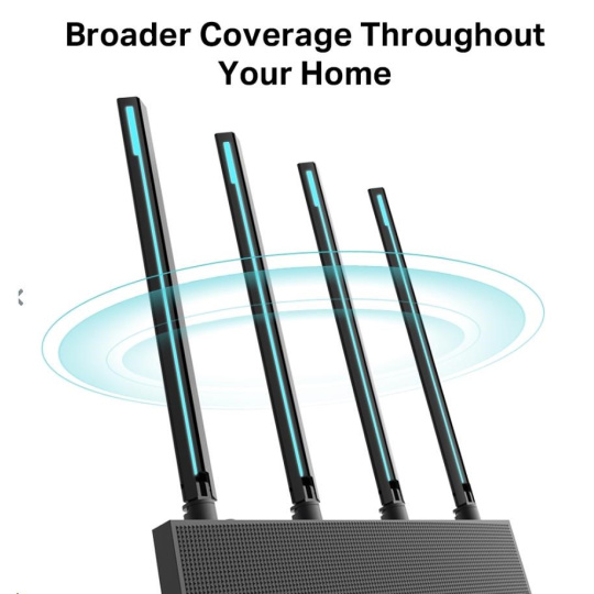 | WiFi Range | 3 Bedroom Houses 4× Fixed High-Performance Antennas Multiple antennas form a signal-boosting array to cover more directions and large areas Beamforming Concentrates wireless signal strength towards clients to expand WiFi range |