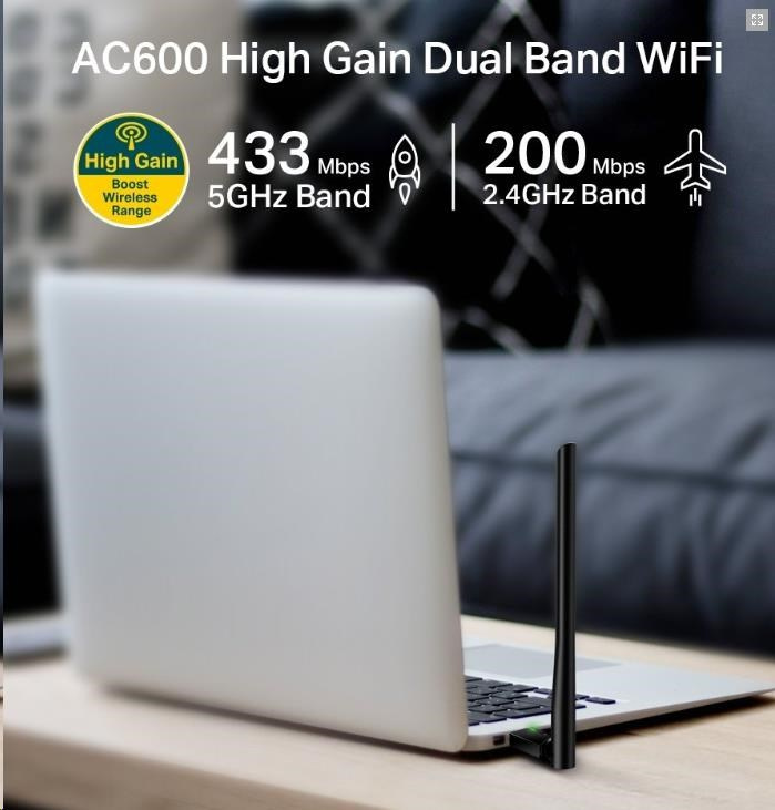 TP-Link Archer T2U Plus WiFi5 USB adapter (AC600,2,4GHz/5GHz,USB2.0)