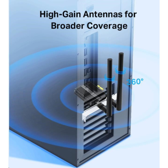 - Široké pokrytí bezdrátovou sítí - Připojte se k Wi-Fi na více místech vašeho domova pomocí dvou externích antén s vysokým ziskem, které zajistí větší pokrytí a zvýšenou stabilitu