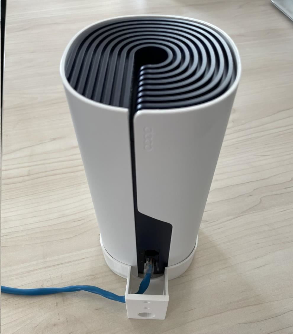 Držák je určený pro uchycení bezdrátových jednotek Deco E4, M4, P9 a S7 značky TP-Link na stěnu a to pomocí dvou šroubů. Držák je vyroben z PETG materiálu na 3D tiskárně a má bílou barvu.
