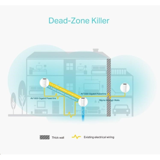 - U elektrického vedení již neexistují žádné hranice stěn ani vzdálenosti. Užijte si domácí WiFi kdekoli!