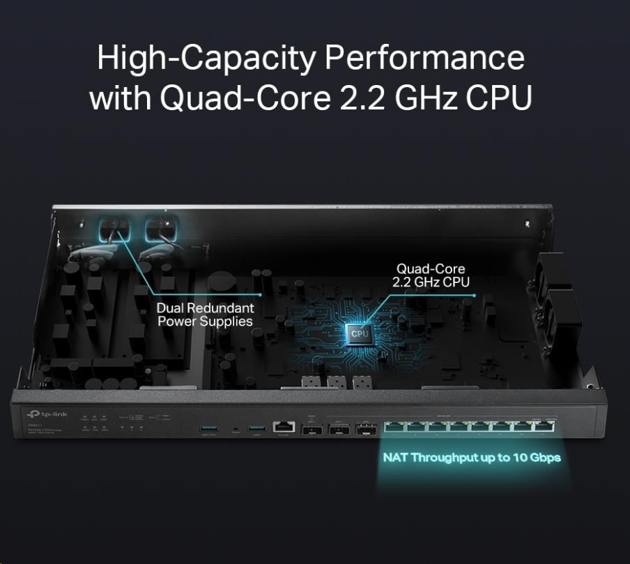 TP-Link ER8411 OMADA VPN router (2xSFP+(1xWAN,1xWAN/LAN),1xSFP WAN/LAN,8xGbELAN/WAN,1xConsole,2xUSB3.0)