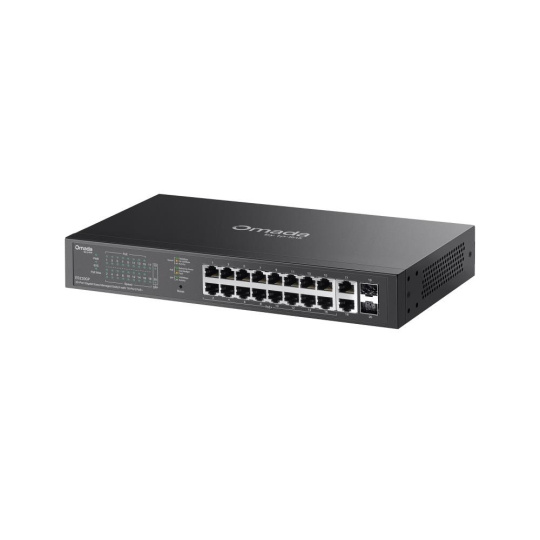 | Interface | • 18× 10/100/1000 Mbps PoE+ RJ45 Ports (16× 802.3af/at-compliant PoE+) • 2× Gigabit SFP Slots • Auto-Negotiation/Auto MDI/MDIX |