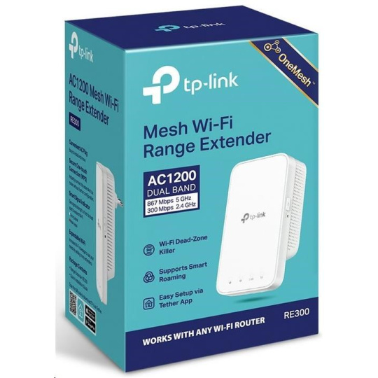 TP-Link RE300 OneMesh WiFi5 Extender/Repeater (AC1200,2,4GHz/5GHz)