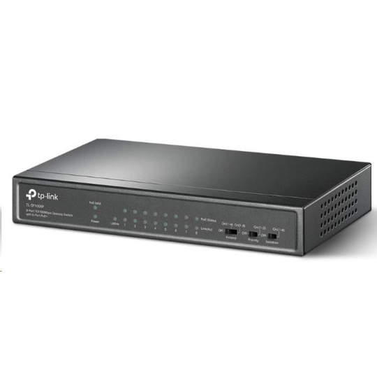 TP-Link CCTV switch TL-SF1009P (8x100Mb/s, 1x100Mb/s uplink, 8xPoE+, 65W, fanless)