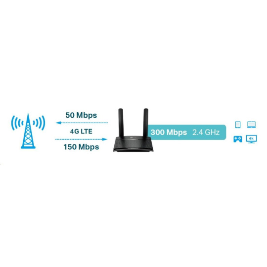 TP-Link TL-MR100 WiFi4 router (N300, 4G LTE, 2,4GHz, 1x100Mb/s LAN, 1x100Mb/s LAN/WAN, 1xmicroSIM)