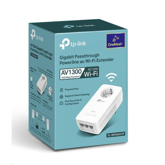 TP-Link TL-WPA8631P OneMesh/EasyMesh WiFi5 průchozí powerline adaptér (AC1200,AV1300,2,4GHz/5GHz,3xGbELAN)