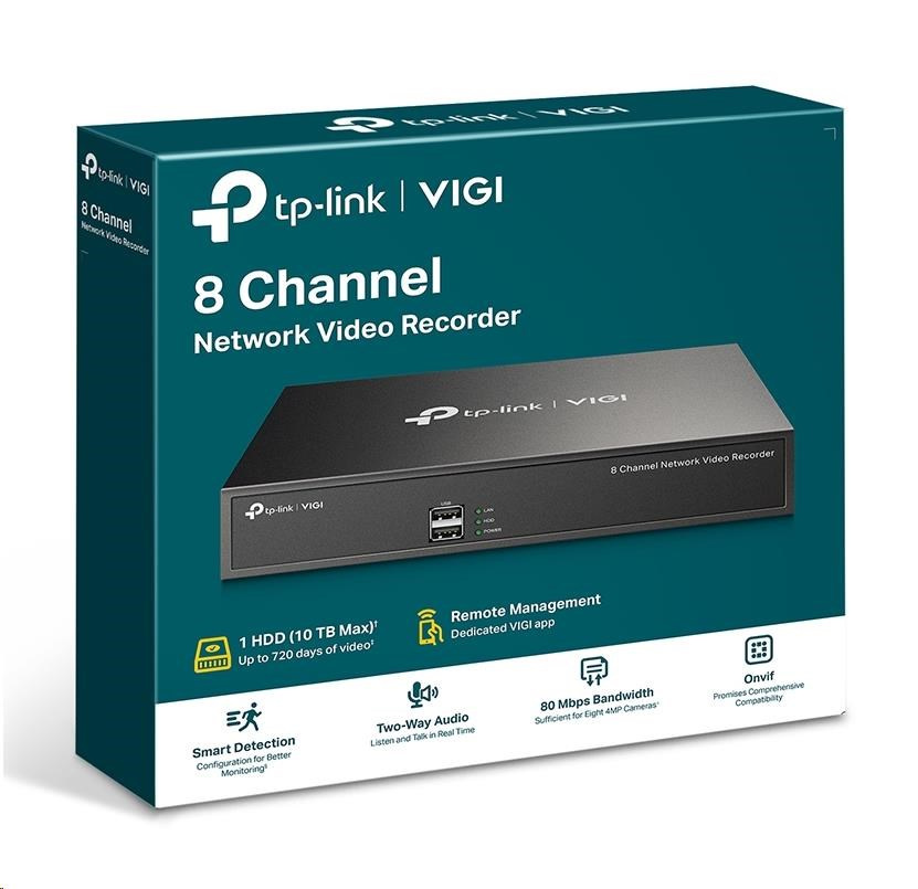 TP-Link VIGI NVR1008H, videorekordér, 8 channels, 1x100Mb/s LAN, 1x VGA, 1x HDMI, 2xUSB2.0