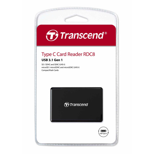 Taking full advantage of the USB 3.1 Gen 1 interface, Transcend's RDC8 card reader will unleash the full potential of your high-speed flash cards. In addition, the RDC8 has an LED indicator to show card insertion and data transfer activity