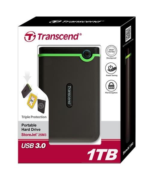 TRANSCEND externí HDD USB 3.0 StoreJet 25M3S, 1TB, Black (SATA, Rubber Case, Anti-Shock)