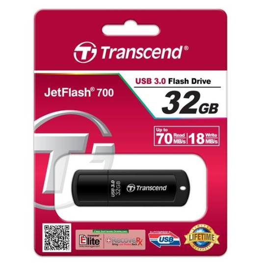 TRANSCEND Flash Disk 32GB JetFlash®700, USB 3.0 (R:71/W:18 MB/s) černá